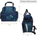 Dimension : - Length- 13 Inch, Height 13 Inch, Width 6 Inch; Highlights: Large Space to organize stuff, Multipurpose easy access front pocket, side pocket for multiple use, handle for easy carry on the go. Detachable changing pad.