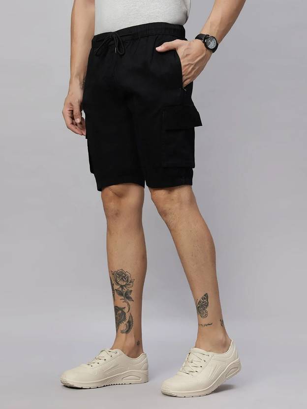 Ho Bindaass Solid Men Black Cargo Shorts