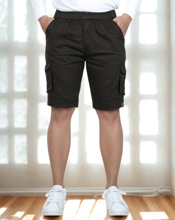 These cargo shorts for men are made with superior blend of cotton and satin fabric which make these six pocket shorts for men very stylish and yet comfortable. The blend of cotton satin fabric is chosen with a strategic purpose, the high percentage of cotton in these cotton shorts for men fabric makes sure the product is comfortable to wear and makes it a natural insulator against heat and cold; the satin makes sure that it provides an intrinsic sheen and drape to these half pant for men. These Bermuda shorts have five pockets. These cargo cpari has two side pockets with zip to allow you keep your important belongings safe, these men shorts has two side pockets to provide aesthetically pleasing look, and one back pocket for extra cargo. These shorts for men / half pant for men has elastic used in waist band and in the mouth of the leg are of high quality to make sure it doesn’t loses it's elasticity for a long period of time. Along with elastic waist band extra drawstrings (nadi) is provided for extra grip and comfort.
