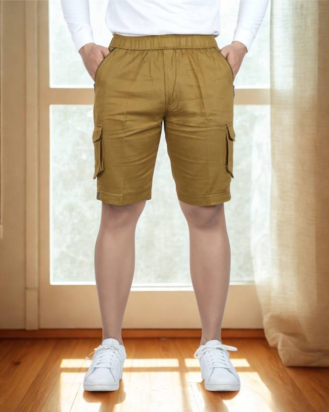 These cargo shorts for men are made with superior blend of cotton and satin fabric which make these six pocket shorts for men very stylish and yet comfortable. The blend of cotton satin fabric is chosen with a strategic purpose, the high percentage of cotton in these cotton shorts for men fabric makes sure the product is comfortable to wear and makes it a natural insulator against heat and cold; the satin makes sure that it provides an intrinsic sheen and drape to these half pant for men. These Bermuda shorts have five pockets. These cargo cpari has two side pockets with zip to allow you keep your important belongings safe, these men shorts has two side pockets to provide aesthetically pleasing look, and one back pocket for extra cargo. These shorts for men / half pant for men has elastic used in waist band and in the mouth of the leg are of high quality to make sure it doesn’t loses it's elasticity for a long period of time. Along with elastic waist band extra drawstrings (nadi) is provided for extra grip and comfort.