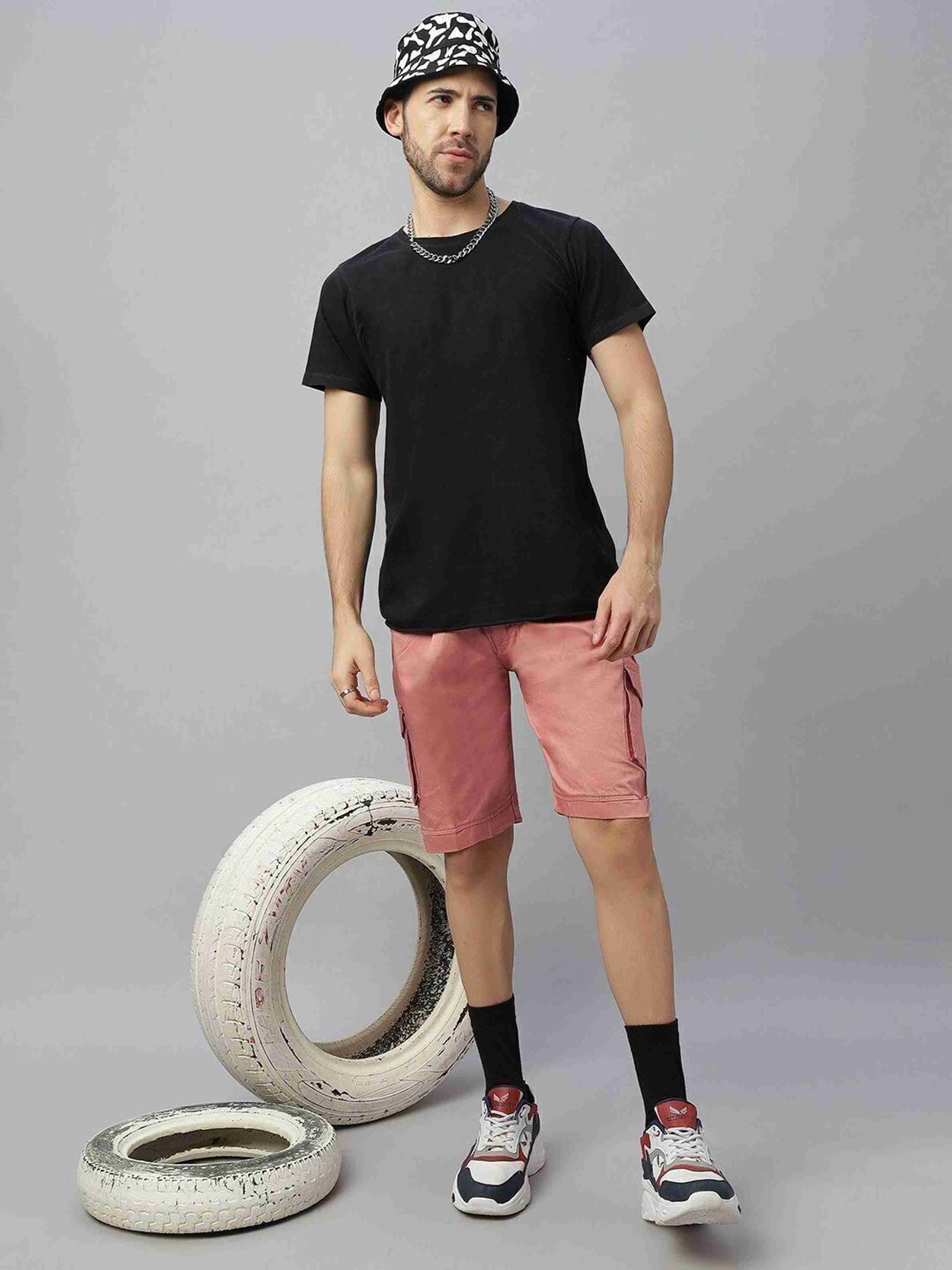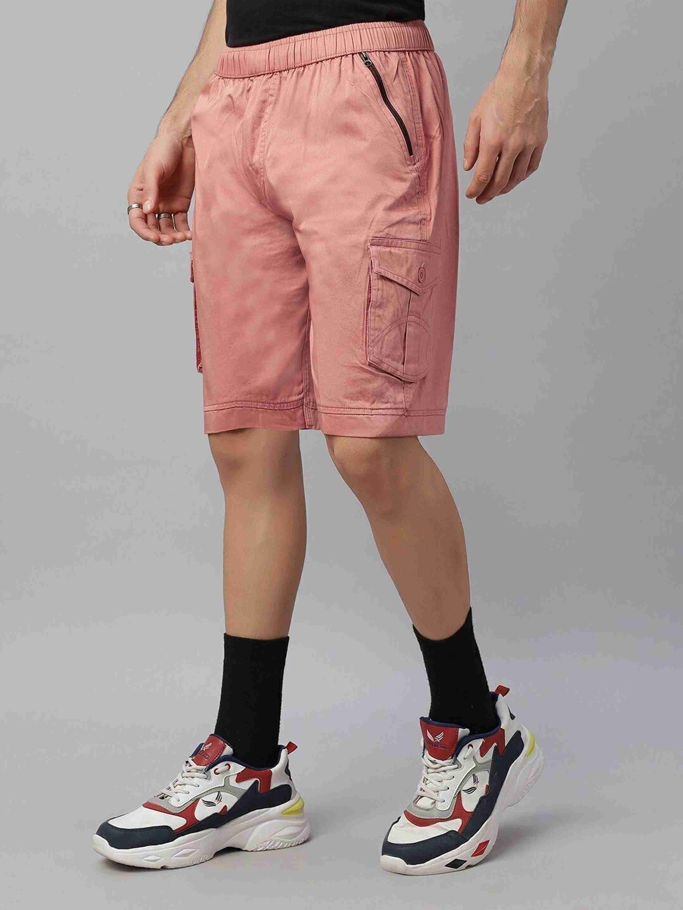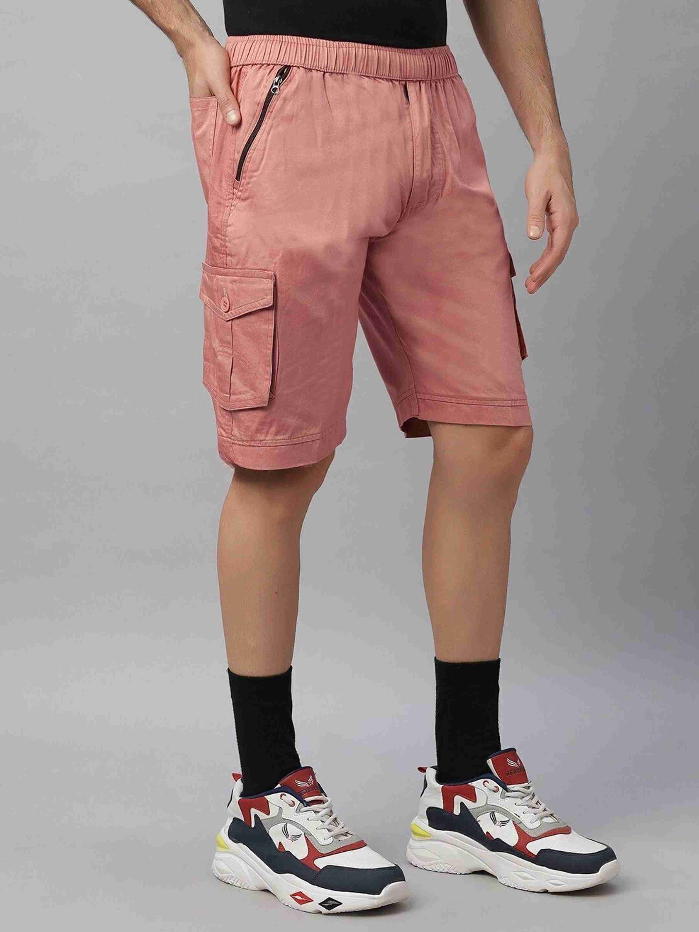 Solid Men Pink Cargo Shorts