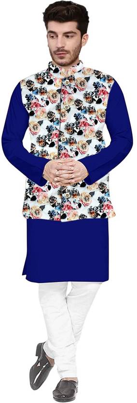 Men Cotton Blend Kurta Churidar Ethnic Jacket Set