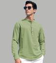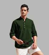 HOC's Men Solid Cotton Blend Straight Kurta (Green)