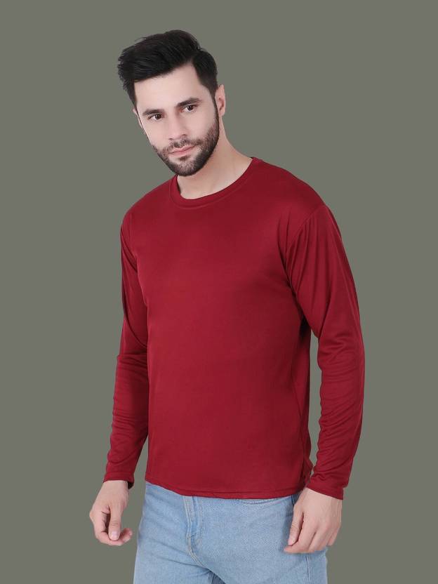 HOC Men Solid Round Neck Polyester Maroon T-Shirt