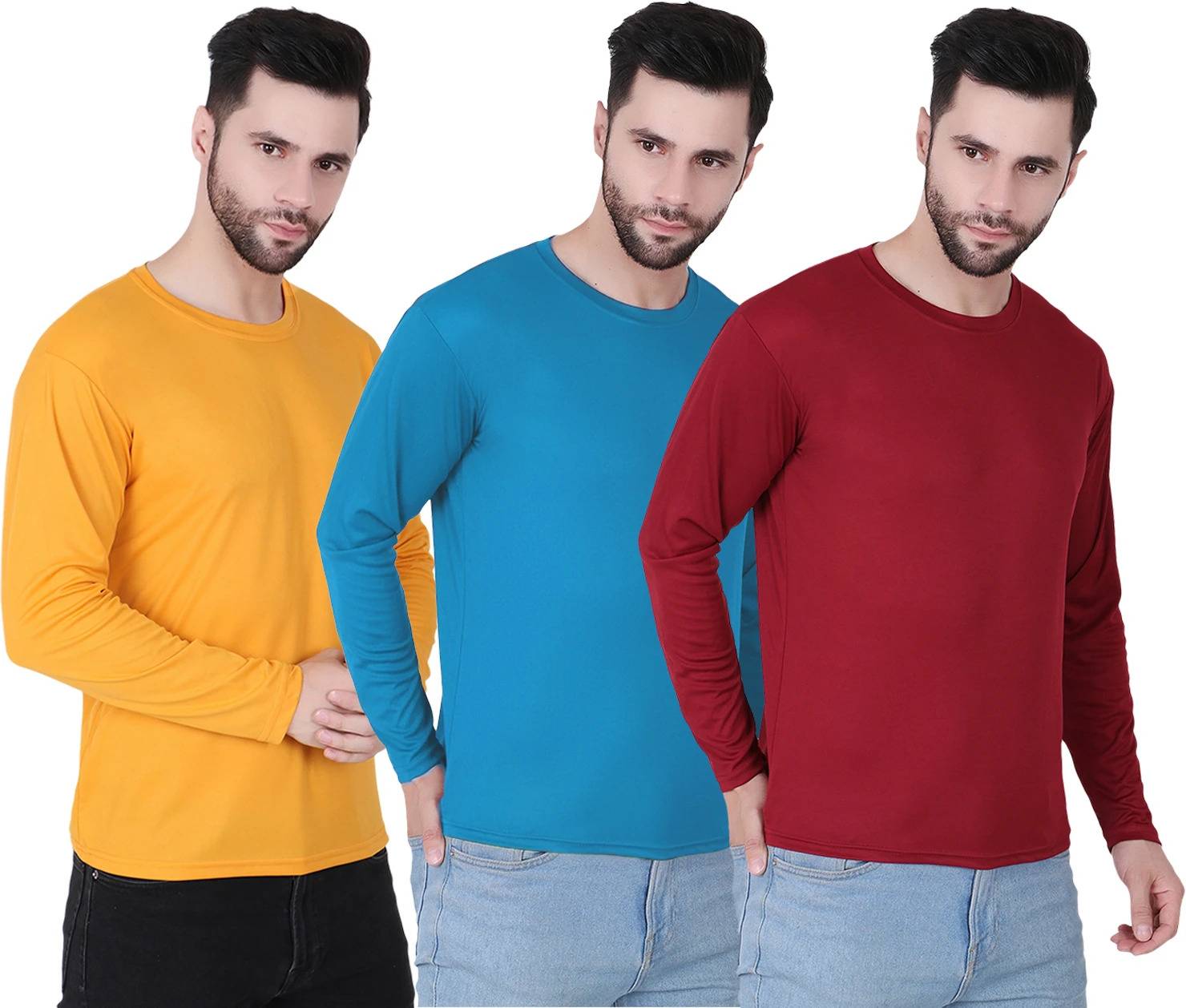HOC Pack of 3 Men Solid Round Neck Polyester Multicolor T-Shirt