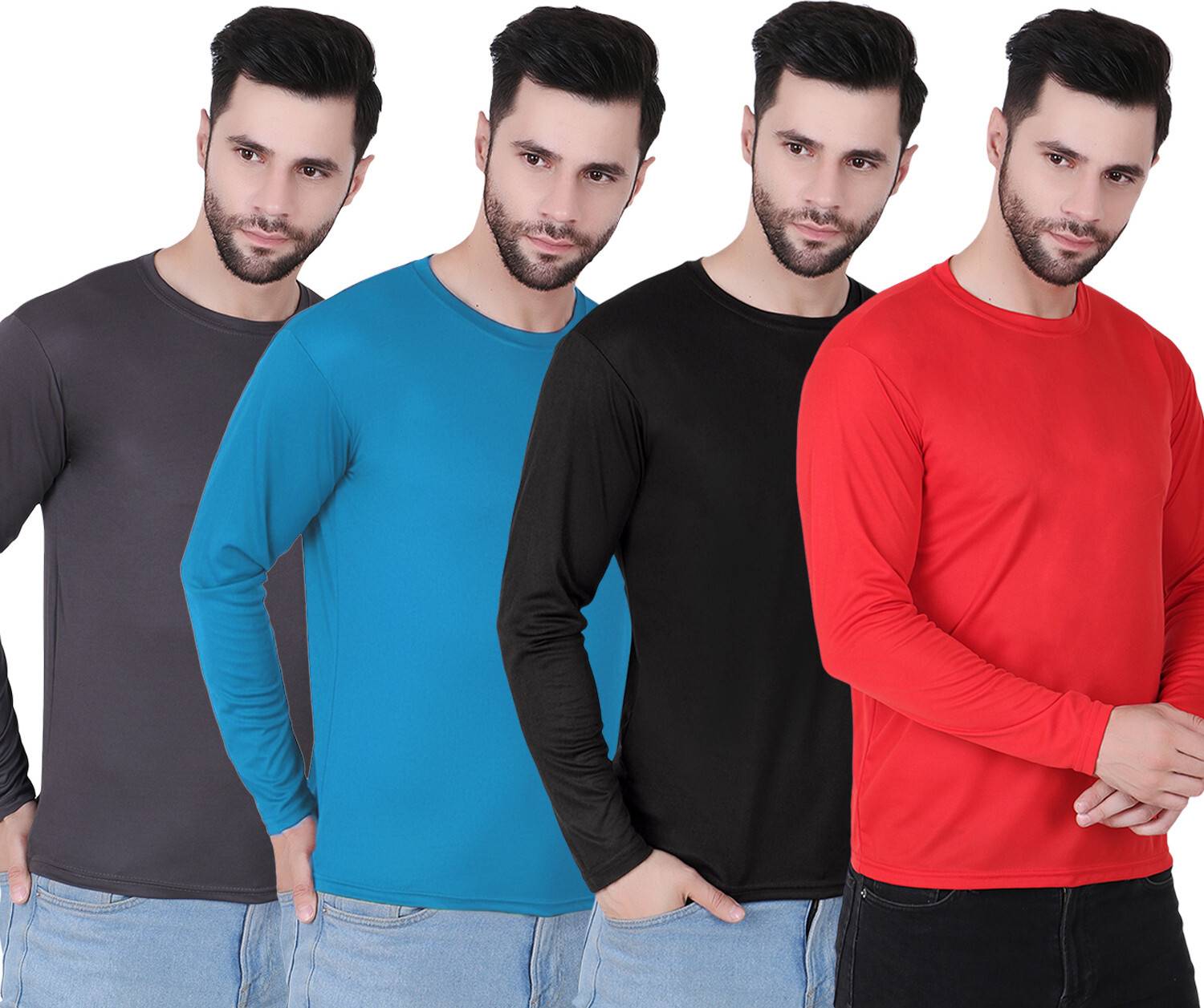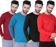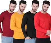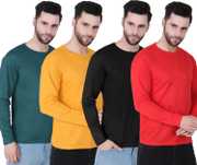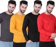 Pack of 4 Men Solid Round Neck Polyester Multicolor T-Shirt