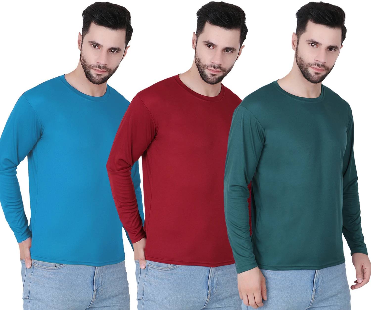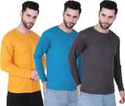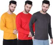 HOC Pack of 3 Men Self Design Round Neck Polyester Multicolor T-Shirt