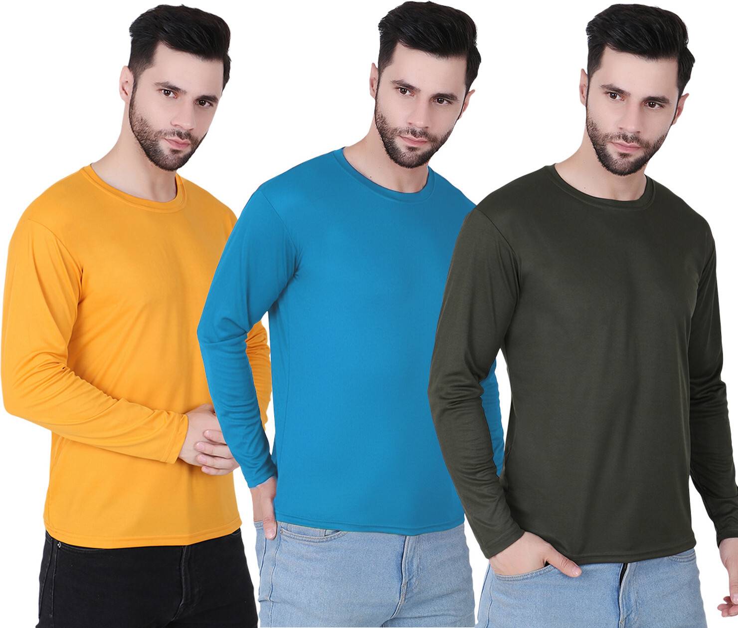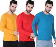HOC Pack of 3 Men Solid Round Neck Polyester Multicolor T-Shirt