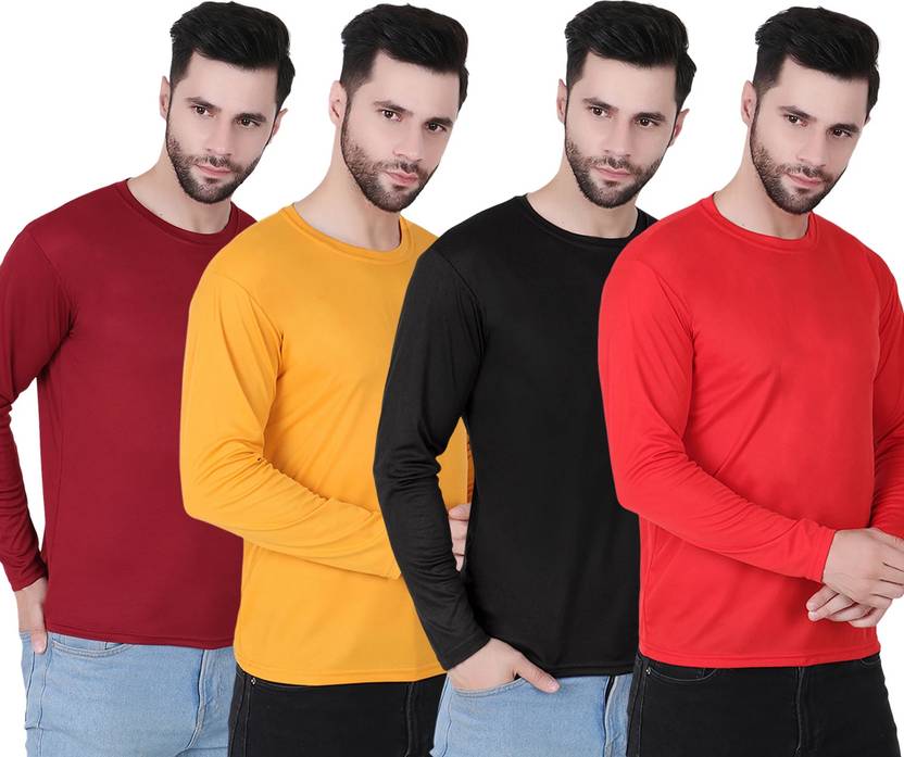 HOC Pack of 4 Men Solid Round Neck Polyester Multicolor T-Shirt