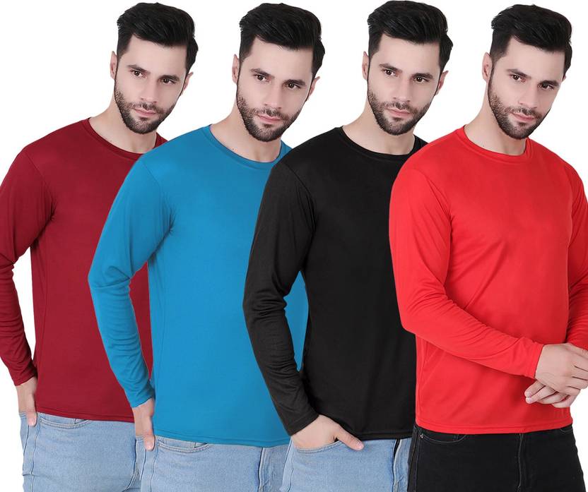 Pack of 4 Men Solid Round Neck Polyester Multicolor T-Shirt
