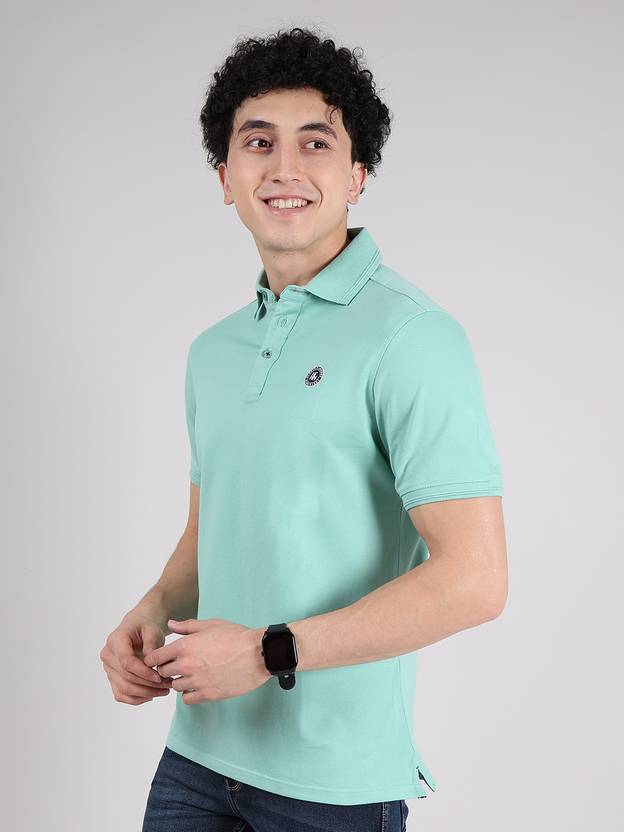 HOFFMEN Men Solid Polo Neck Cotton Blend Light Green T-Shirt
