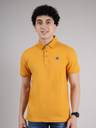 HOFFMEN Men Solid Polo Neck Cotton Blend Yellow T-Shirt