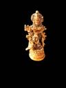HOIVA Brass Krishna Statue Playing Flute On Round Double Lotus for Home / office Decorative Showpiece - 7 cm (Brass, Yellow)