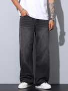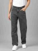 Men Loose Fit Mid Rise Dark Grey Jeans