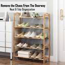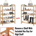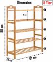 100% NATURAL BAMBOO - HOKIPO Multi Utility Storage Organizer Rack is Made of natural bamboo wood with its smooth surface and rounded corners, this shoe rack is safe to use around children as well. SLEEK STYLE: Designed with a stylish urban look, this shoe stand adds colors to your hallway; allows you to easily organize your shoes in the living room, bathroom and gateway. THOUGHTFUL WORKMANSHIP - This stylish 5-tier shoe rack stand that holds up to 15-20 pairs of adults and kids shoes, offers clearance of 19 cm between the shelves. SLATS FOR VENTILATION - This shoe organizer has slatted surface to resist moisture and prevent the buildup of odor. DAMP-PROOF - Coating makes the storage rack water resistant and easy to clean with a damp cloth. SPACE SAVING - With this Utility Rack add great organization and reduce shoe clutter while being elegant at the same time.Great dimension of makes it a perfect storage solution for your entryway, Foyer, Wardrobe, Closet, Dormitory, Patio, Cabinet, Garage etc. DIY AS YOU WISH: Open room on the top shelf for tall boots and the bottom shelf for high top sneakers and boots; this shoe rack provides enough space for all tour footwear MULTIFUNCTIONAL -This Utlity Storage Rack Is Not Only For Shoes, You could also place some books, towels that needed to be accessible in daily, such as Handbags, Toys, Books, Plants. It Also can be a Display Stand for your valuable collectives in living room, storage rack for bedroom, utility racks for kitchen, shoe stand for home, storage rack for living room etc EASY TO SET UP - No special tools required for this shoes rack, Just simply snap each tier together and fix it with screws. Storage stand is easy to clean and maintain, You can use a wet cloth to clean it directly. Package Content 5-Tier Multiutility Storage Rack Shoe Stand. SIZE - Measures 90 cm in Height 67 cm Length and 25 cm Breadth.