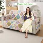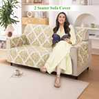 HOKiPO Polyester 2 Seater Sofa Damask Cover (Pack of 1 Ogee Ivory)