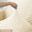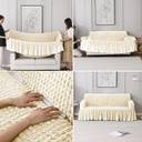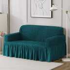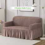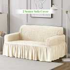 FABRIC - 240-260 GSM Fabric made from blend of 95% polyester & 5% spandex, this super stretchable elastic double seater sofa cover with frill gives stylish and comfortable feel to your sofa. PERFECT FIT - This universal size 2 seater bubble sofa cover with skirt can be used to upholster most double seat sofas with sofa length ranging between 130 cm to 160cm. APPEALING DESIGNS - Transforms the bland and monotonous living room into vibrant and warm place with HOKIPO bubble sofa couch cover with ruffle skirt. EASY TO INSTALL/PUT ON - You'll be done in no time! Just slip it on, Tuck any extra fabric and insert the non slip foam anchors into the gap. EASY WASH CARE - Machine Washable Sofa Slipcover, wash at or below 30 degrees celsius. Tumble dry. Do not bleach. Do not iron. PACKAGE CONTENT - 1 Double Seater Sofa Cover with skirt