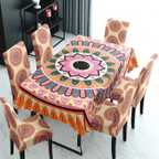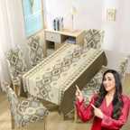 HOKiPO Polyester 6 Seater Chair Abstract Cover (Pack of 7 Brown)