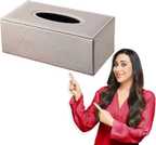 HOKiPO PU Leather Tissue Box Holder (D1-AR4081), Vehicle Tissue Dispenser (Brown)