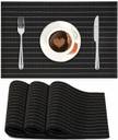 HOKiPO Rectangular Pack of 4 Table Placemat (Black, PVC)