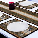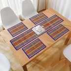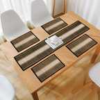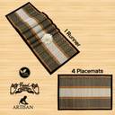 PLACEMATS SET OF 4 WITH RUNNER - Create and elegant setting to your dining table with HOKIPO 100% Eco Friendly Madurkathi Dharbai Grass Table Runner and Placemats Set. With its beautiful design and attractive colours, our Dining Table Runner with Mats is sure to spruce up any room or table setting.MATERIAL - This Dharbai Table Runner Place Mat Set is made out of locally grown soft reed grass (also called Madurkathi ) from West Bengal and woven on a bamboo loom, this is one of its kind product. CLOTH PIPING - The bold borders of this placemats and runner set are smart and exquisite, and lend it a fresh feel and also ensures that mat does not split from ends.CRAFTMANSHIP - With this Runner and Mats for Dining Table bring home something special and unique, individually made with love and care. Handmade by local artisans in a facility that exports to global markets. Refresh your home and office decor distinctively and luxuriously to add more elegance to your living spaces with HOKIPO Madurkathi Placemats and Table Runner Set.HEAT RESISTANT - These dining table runner mat set offer heat insulation, protects table from heat damage, scratches & stains. You can use these dinner mats set of 4 with runner for everyday dining as well as for special occasions. It makes the dining table more presentable and elegant.WASH CARE - Madurkathi tablemats runner set are easy to care and maintain. Simply wipe with a damp cloth as and when required. Sunlight / Air Dry before Storing. SIZE - HOKIPO Madurkathi Table Runner Measures - 12 x 52 Inches and each Table Mats Measures - 12 x 17 Inches. PACKAGE CONTENT - Eco-Friendly Handcrafted Dharbai Set of 4 Dining Tablemats with 1 Runner.