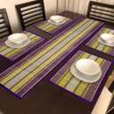 MATERIAL - This Dharbai Table Runner Place Mat Set is made out of locally grown soft reed grass (also called Madurkathi ) from West Bengal and woven on a bamboo loom, this is one of its kind product. CLOTH PIPING - The bold borders of this placemats and runner set are smart and exquisite, and lend it a fresh feel and also ensures that mat does not split from ends.