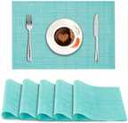 HOKiPO Rectangular Pack of 6 Table Placemat (Blue, PVC)