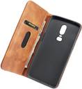 Magnetic Flip Cover For OnePlus 6 Leather Wallet Case Auto Close With Foldable Kickstand Card Cash Holder - Brown