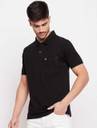 Couple Solid Cowl Neck Cotton Blend Black T-Shirt