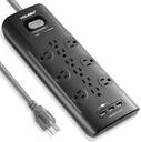 12 Outlets Surge Protector Power Strip with 3 Smart USB Charging Ports (5V/3.1A) and 6' Heavy Duty Extension Cord, for Home, Office, Computers, Appliances, Equipment (4000 Joules) - Black