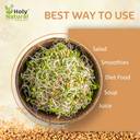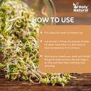 | Usage Instruction | - Sprouts of alfalfa seed: First, place the seeds in a bowl or jar. Then, fill with water: use around 2-3 times the amount of water for seeds. Keep them in a dark place at room temperature for 8-12 hours. Once you've soaked your seeds and started the germination process, the next stage is to rinse and drain them until they start sprouting., Add alfalfa sprout seeds in small quantities to your daily meal and breakfast. You can make alfalfa salad, and smoothies, add other juice and add soup, and diet food.