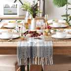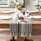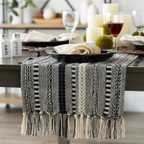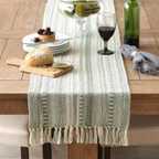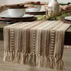 Transform your dining space with this luxurious 14x72 inch premium cotton woven table runner crafted with intricate detailing and elegant tassels. Designed to blend modern boho and farmhouse charm, this table runner instantly uplifts the beauty of your dining table, coffee table, console, or sideboard.