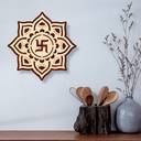 Home Delight Beautiful Design Wooden Double Layer Religious Wall Hanging Swastik Home Decor (11 inch X 11 inch, Brown, Off White, Beige)