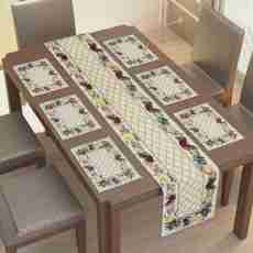 Featuring a lively fruity pattern, these table mats with a matching runner adds a cheerful...