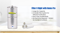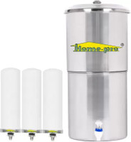 Home-pro Stainless Steel Water Filter | Non Electric | Long Ceramic Candle 3 | 24 L Gravity Based Water Purifier (Silver)
