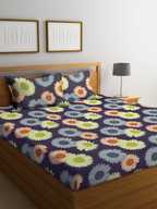 Home Sizzler Microfiber Double Flat 144 TC Floral Bedsheet (Pack of 1, Blue)