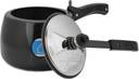 Designed to handle up to 3 litres at a time, this pressure cooker from Home Zone is a great addition to your modern kitchen and cookware collection. The pressure cooker has an induction bottom which makes it ideal for cooking chicken curry or boiling veggies on an induction cooktop. Crafted from high quality aluminium, this Hard Annodised Pressure Kalash Cooker is designed with a stainless steel lid. A great gifting option for friends who love cooking, this black pressure cooker is easy to use as its unique body with rounded sides makes stirring the food easy and offers better visibility. It features a rubber gasket and a heat resistant valve cap that makes this pressure cooker safe to use.