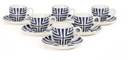Home4U Pack of 12 Bone China Blue & White Bone China Celeste Cup And Saucer (Set of 6) (Blue, Cup and Saucer Set)