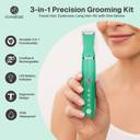 The HomeBasic Bloom Buzz is a compact, efficient 3-in-1 grooming tool designed to meet the grooming needs of modern women. With three interchangeable heads, this sleek and functional face and body trimmer for women lets you manage facial hair, eyebrows, and longer strands using one versatile device. It simplifies your beauty routine without the clutter of multiple tools, making grooming faster and more organized. Equipped with hypoallergenic stainless steel blades, this facial hair remover for women offers a gentle, skin-friendly trim. Ideal for sensitive areas like the face, underarms, and bikini line, the blades glide smoothly without pulling, nicks, or irritation. Whether you're shaping your brows or cleaning up peach fuzz, you’ll enjoy clean, consistent results every time. Powered by a rechargeable battery, this rechargeable hair trimmer offers up to 100 minutes of cordless use after just 1.5 hours of charging. Its Type C hair trimmer port ensures quick, efficient charging with wide compatibility. Compact and lightweight, it’s easy to carry and perfect for women who need a travel-friendly trimmer for women on the go. The trimmer is IPX6-rated, making it safe for use in wet environments like the shower or bathroom sink. This waterproof face trimmer for women is also easy to clean—just rinse the detachable heads and use the included brush. The all-in-one design makes it a convenient portable grooming kit for everyday use or travel. Whether for daily upkeep or last-minute touch-ups, this efficient, compact, and painless hair removal tool brings salon-like grooming into the comfort of your home. The Bloom Buzz is built for confidence, precision, and total convenience.