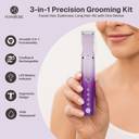 The HomeBasic Bloom Buzz is a compact, efficient 3-in-1 grooming tool designed to meet the grooming needs of modern women. With three interchangeable heads, this sleek and functional face and body trimmer for women lets you manage facial hair, eyebrows, and longer strands using one versatile device. It simplifies your beauty routine without the clutter of multiple tools, making grooming faster and more organized. Equipped with hypoallergenic stainless steel blades, this facial hair remover for women offers a gentle, skin-friendly trim. Ideal for sensitive areas like the face, underarms, and bikini line, the blades glide smoothly without pulling, nicks, or irritation. Whether you're shaping your brows or cleaning up peach fuzz, you’ll enjoy clean, consistent results every time. Powered by a rechargeable battery, this rechargeable hair trimmer offers up to 100 minutes of cordless use after just 1.5 hours of charging. Its Type C hair trimmer port ensures quick, efficient charging with wide compatibility. Compact and lightweight, it’s easy to carry and perfect for women who need a travel-friendly trimmer for women on the go. The trimmer is IPX6-rated, making it safe for use in wet environments like the shower or bathroom sink. This waterproof face trimmer for women is also easy to clean—just rinse the detachable heads and use the included brush. The all-in-one design makes it a convenient portable grooming kit for everyday use or travel. Whether for daily upkeep or last-minute touch-ups, this efficient, compact, and painless hair removal tool brings salon-like grooming into the comfort of your home. The Bloom Buzz is built for confidence, precision, and total convenience.