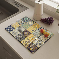 Featuring an elegant printed pattern, this dish mat enhances the look of your kitchen space while offering practicality. The print's aesthetic touch does not compromise on its functionality, allowing you to keep your counters organised in style. Additionally, the patterned surface introduces a touch of charm to the everyday task of dish drying, making it appealing.