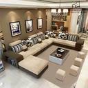 Homeify Carlo with 4-Puffy Convertible for Living Room Fabric 9 Seater Sofa (Finish Color - Brown&Beige, DIY(Do-It-Yourself))