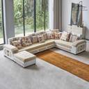 Homeify Carlo 9 Seater Fabric Sofa Set with 4-Puffy Convertible Sofa Set for Living Room Fabric 9 Seater Sofa (Finish Color - Beige & White, DIY(Do-It-Yourself))