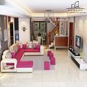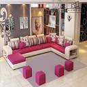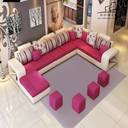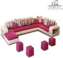 Homeify Carlo 9 Seater Fabric Sofa Set with 4-Puffy Convertible Sofa Set for Living Room Fabric 9 Seater Sofa (Finish Color - Rose Red & Light Beige, DIY(Do-It-Yourself))