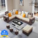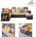 Homeify Carlo 9 Seater Fabric Sofa Set with 4-Puffy Convertible Sofa Set for Living Room Fabric 9 Seater Sofa (Finish Color - Beige & Brown, DIY(Do-It-Yourself))