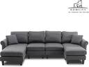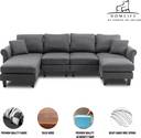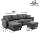 Homeify Reba Upholstered Chaise Sectional with Ottoman Fabric 6 Seater Sofa (Finish Color - Dark Grey, DIY(Do-It-Yourself))