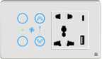 HomeMate Smart Touch Switch Panel | 2 Switch, 1 Fan & 1 Socket with Quick Charge USB's (White)