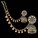 Golden Jhumka With Hair Chain Earring with Ear Chain jhumka earring for women