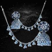 Golden Jhumka Earring for Women Bahubali Baliyan Jhumka With Hair Chain Diamond