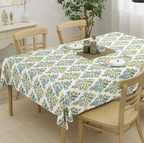 • Dining Table Cover 45 x 92 Inches Printed Table Cloth for 6 Seater, Rectangular Centre Table Cover - Yellow Ikat